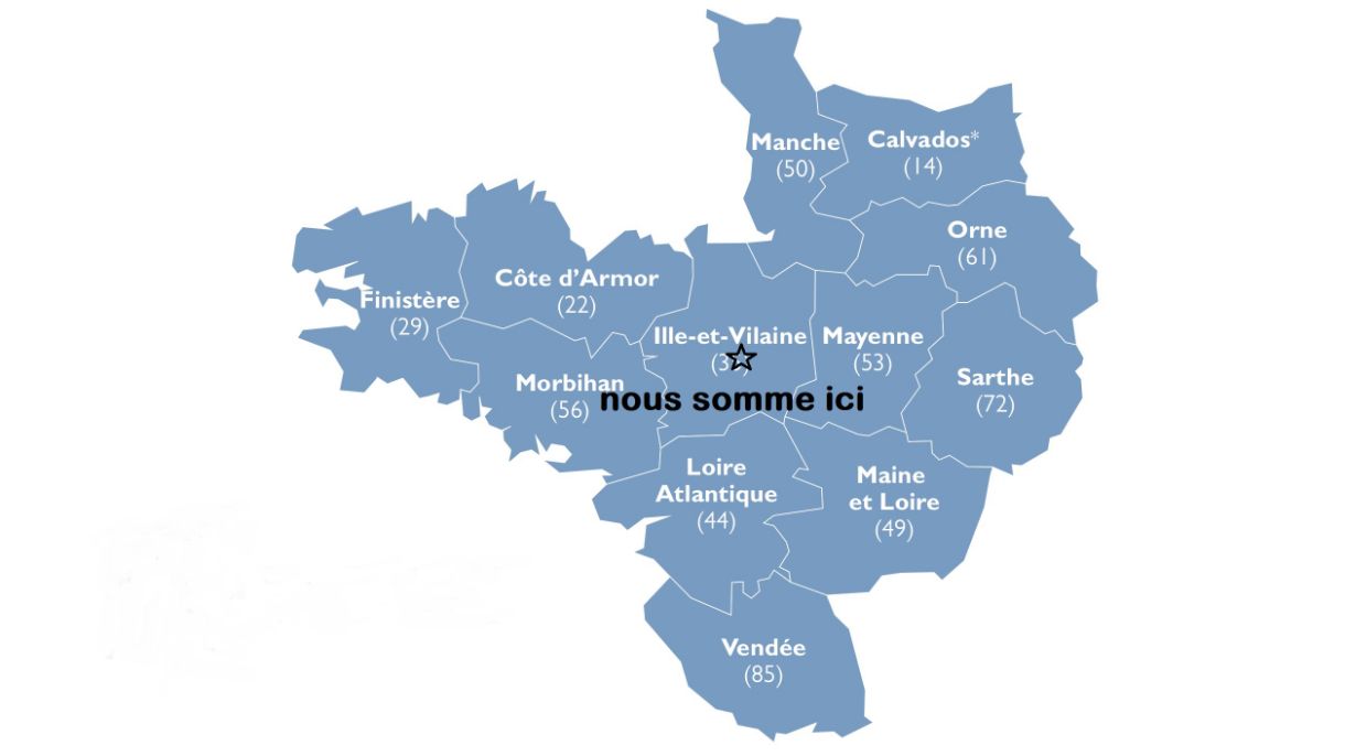 Morbihan (56), Côtes-d’Armor (22), Loire-Atlantique (44), Mayenne (53) et Manche (50).